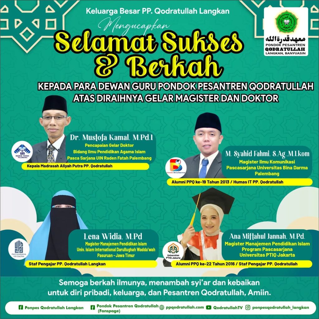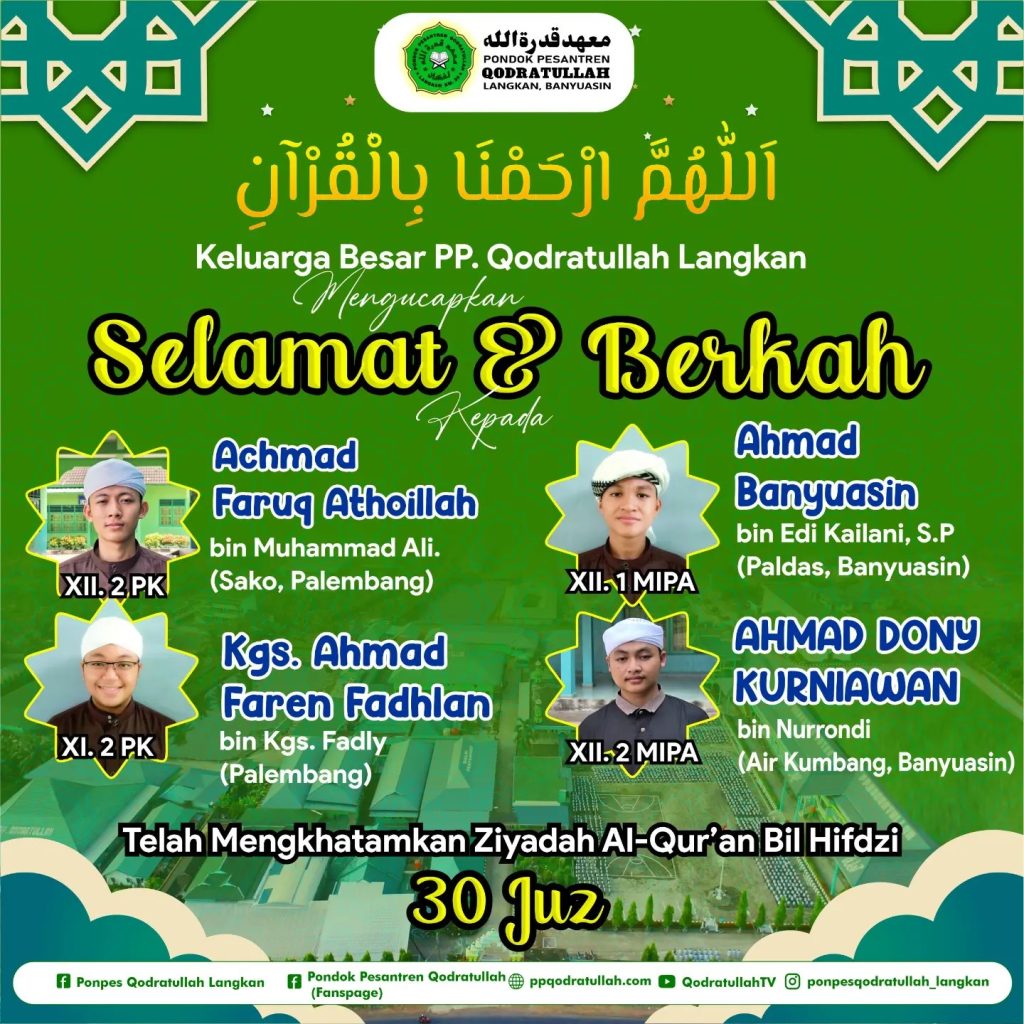 Kami segenap dewan pengasuh PP. Qodratullah Langkan mengucapkan selamat berjuang dan ingatlah bahwa setiap usaha dan perjuangan memiliki nilai dan arti, semangat dan dedikasi kalian layak dihargai. Semoga kalian meraih kesuksesan dan menjadi inspirasi bagi banyak orang. Apapun nanti hasil yang kalian dapatkan, kalian sudah mengharumkan nama Pondok Pesantren Qodratullah. Perjuangan memang tak pernah mudah, […]